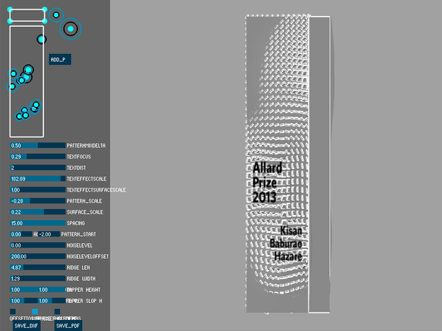 Based on a simple rectangular primitive, each of these awards has a unique form and surface texture that is computationally generated for each recipient. The final products are either produced from electroformed laser-sintered nylon, or investment cast from bronze.