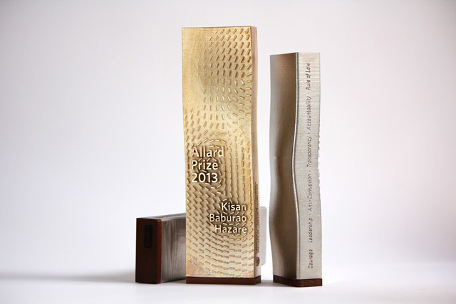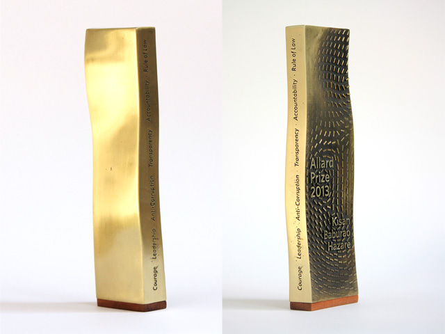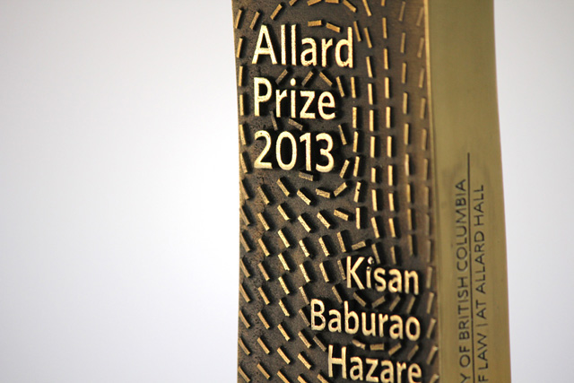 The award design for the inaugural Allard Prize for International Integrity, an initiative of the Peter A. Allard School of Law at the University of British Columbia.